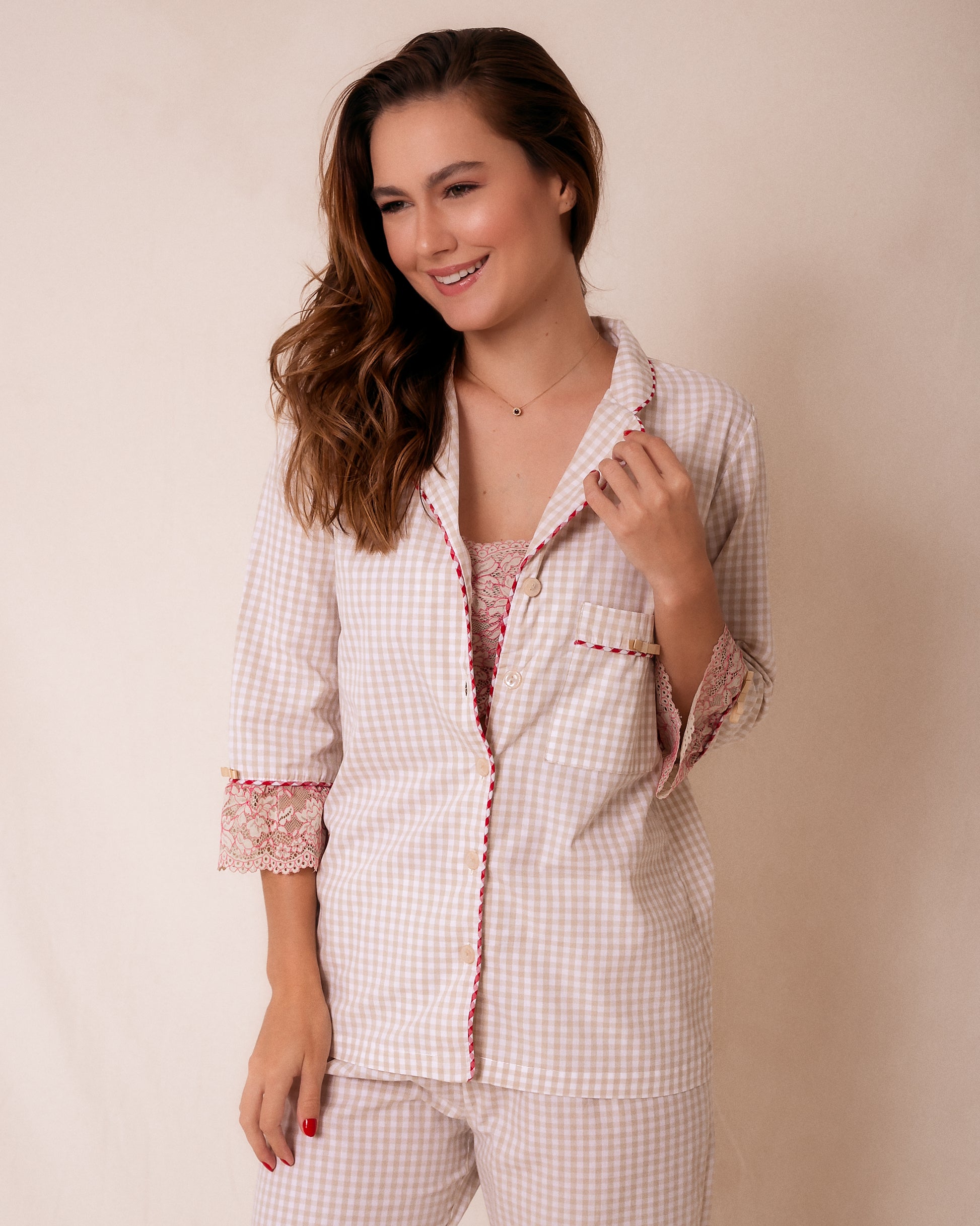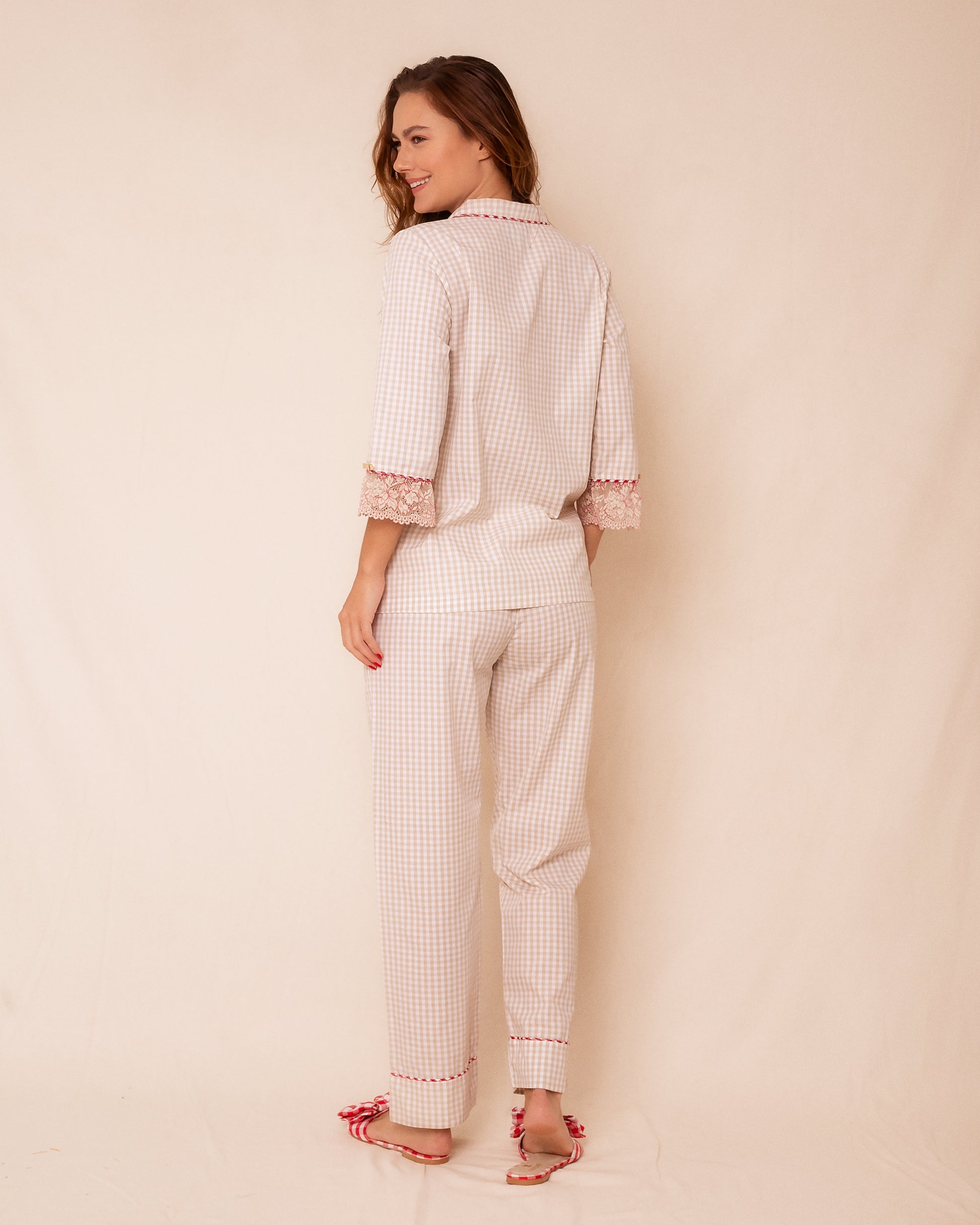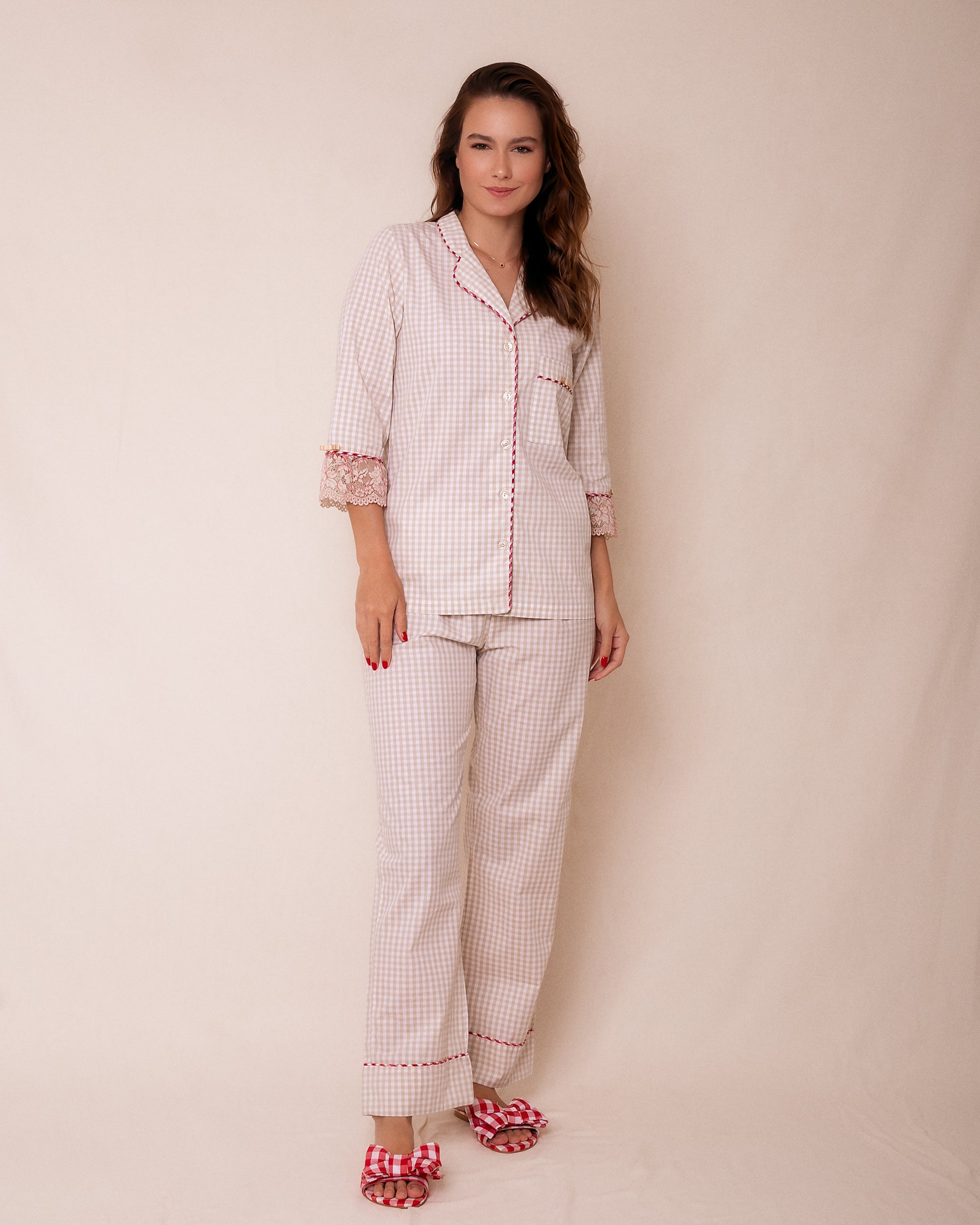 Pijama Longo Vichy Bege